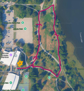Please do not ride over the muddy embankment on the north side of the field – you may slip! (Area noted in yellow)